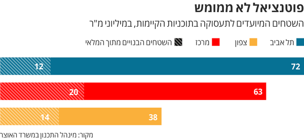אלא שבמוסדות התכנון המספרים שונים לגמרי. נתונים שחשפה בשנה שעברה התוכנית האסטרטגית ל–2040 של מינהל התכנון, הצביעו כבר אז על עודף היצע תכנוני של נדל"ן מניב בישראל — של כ–240 מיליון מ"ר.